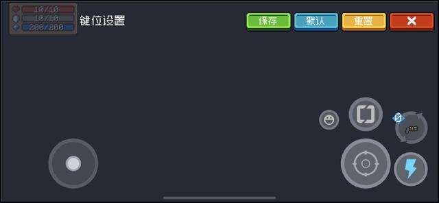 手机版元气勇士玩法:左下角的圆盘用于移动,右下角闪电图案表示使用技能,旁边的攻击键用于攻击怪物,射出子弹,攻击键上面的转换图标可以用于转换特殊武器的形态,左上角三个状态由上而下分别是血量,盾牌,蓝量