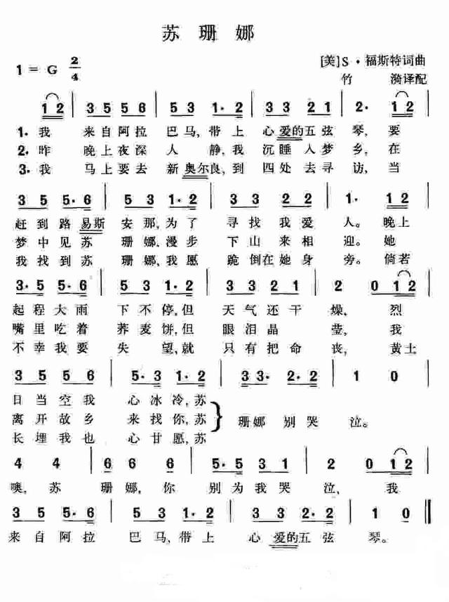 曲谱是美国的一首民谣《哦,苏珊娜》。