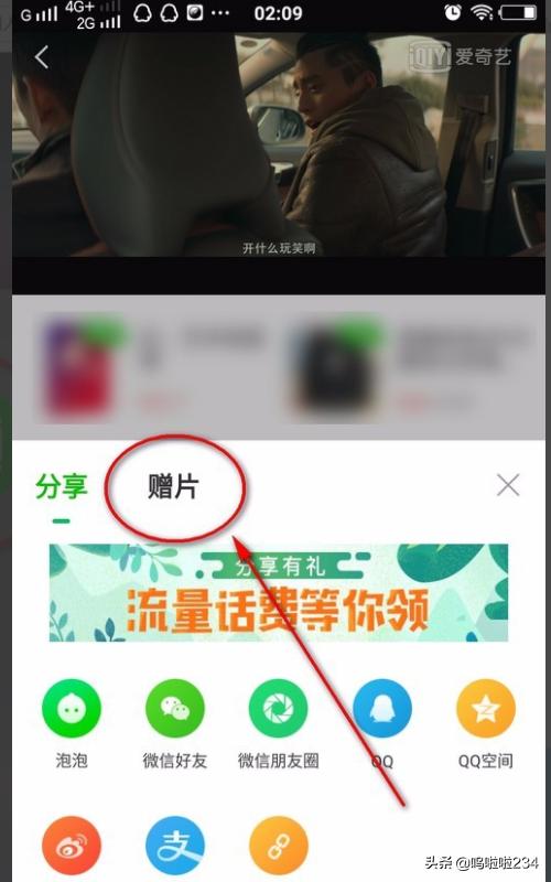 4、界面弹出分享页面,点击旁边的【赠片】。