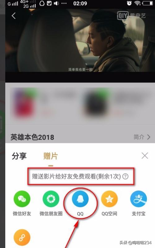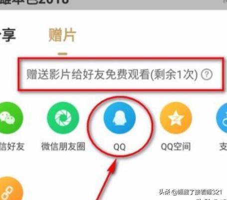 5、点击旁边的【赠片】后,选择赠片途径,比如想要发到对方的QQ上,就选择QQ图标。