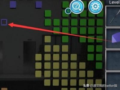 2、点击左边黑墙,放入紫色方块,点击统一方块颜色,柜门打开,得到字母牌。
