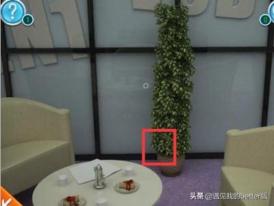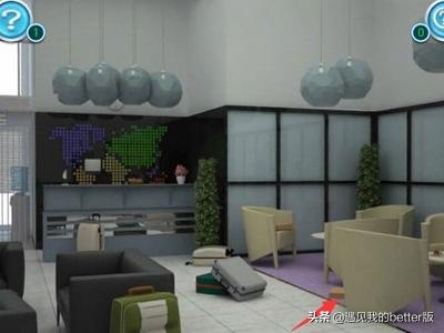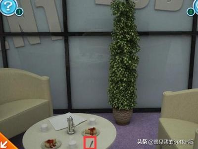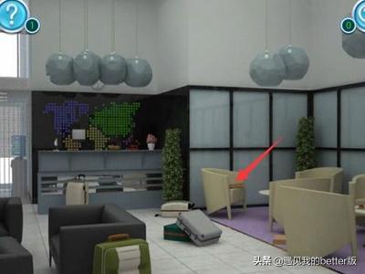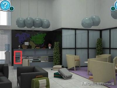 9、在茶几旁的花盆处找到钥匙,来到前台,将钥匙插入键盘旁边的白色钥匙盒孔中,点击门上的窗帘,打开门,恭喜你完美通关了!