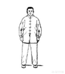 1、起势:左脚开步、两臂前举、屈膝按掌。