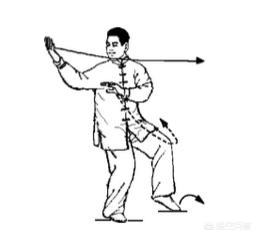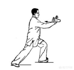 20、闪通臂:提手收脚、迈步分手、弓步推掌。