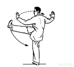 13、右蹬脚:穿掌提脚、弓步分手、跟步合抱、提膝分手、蹬脚撑臂。