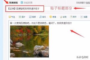 4、如何发布主题贴。下拉到底部,就会看到发贴的地方。先输入贴子的标题部分,再对贴子进行大致内容的编写,即概述部分。可以插入一张或多张你喜欢的图片作为“镇楼图”。最后点击发表,你的贴子就发布成功了。