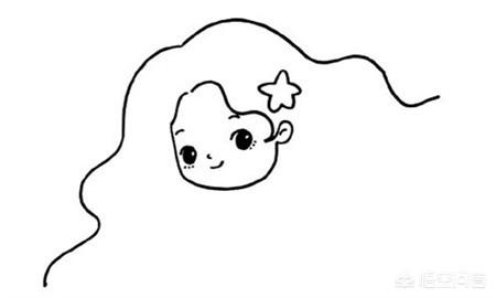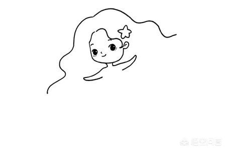 首先在画面靠上位置画出美人鱼的面部以及波浪形的头发,注意头发要尽量画的多一些,大一点,画好后为美人鱼画上五官以及海星发卡