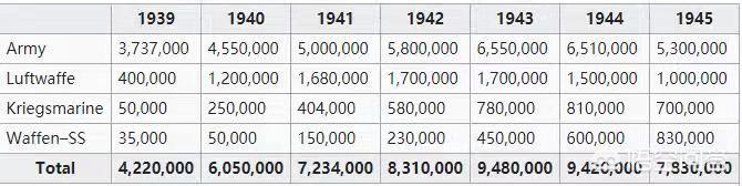 德军数量最高峰时动员了一千三百万人,基本作战时都维持在起码五百万人以上的规模。