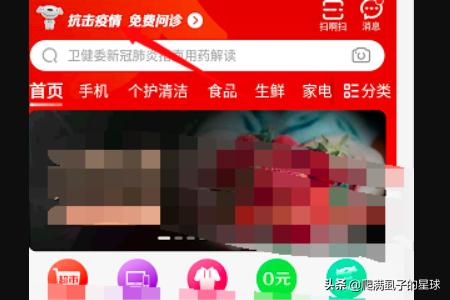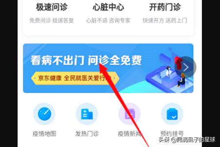1、我们打开京东以后,在左上角我们就可以看到有相关的免费问诊的介绍,点击就可以进入到里面。